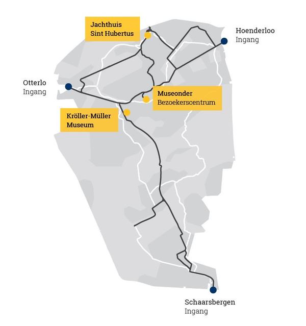 Sie können das Kröller-Müller-Museum am 26. Juni ganztägig vom Eingang Schaarsbergen erreichen.