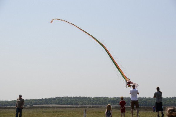 Het Vliegerteam uit Eefde heeft diverse stuntvliegers en power kites. Het pronkstuk uit hun collectie is de 60 meter lange Chinese dragon kite waar zij een half jaar lang aan gewerkt hebben. Bij droog weer en voldoende wind wordt deze enorme vlieger tijdens de vliegerwedstrijd de lucht in gelaten. “De vlieger is zo groot dat we hiervoor de hulp van twaalf bezoekers nodig hebben”, licht Roland van Het Vliegerteam toe. Zorg dus dat je erbij bent!
