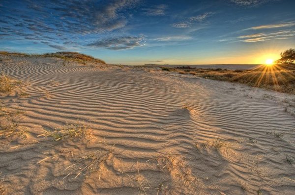 Zonsondergang boven de zandverstuiving. Foto: Emiel Sloot