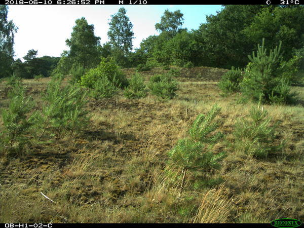 Als het erg warm weer is, warmen bomen, struiken en gras ook op. De bomen kunnen door de zon een hogere temperatuur krijgen dan de omgeving. Als ze dan bewegen ontstaat er een bewegend temperatuurverschil en maakt de camera foto’s. Ook kan een briesje wind snel voor temperatuurverschil zorgen. De afgelopen maanden is het in Nederland erg warm geweest. De foto’s die nu te zien zijn op Snapshot Hoge Veluwe zijn onder andere van deze warme periode. Daarom zijn er helaas heel veel beelden van wuivende boompjes te zien.