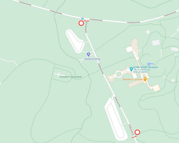 Van 26 oktober tot 28 oktober worden er wegwerkzaamheden uitgevoerd aan een deel van de Wildbaanweg, ter hoogte van het Kröller-Müller Museum.