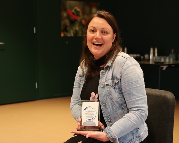 Foto 1: Anneloes Strengers, commercieel medewerker buitendienst, met de bronzen award