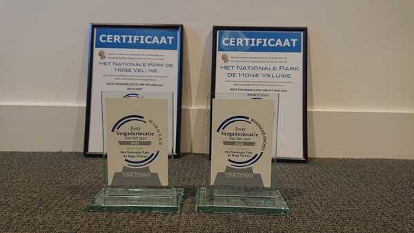 Deze awards zijn de prijzen voor de beste meeting- en eventlocaties, de beste leveranciers en de beste aanbieders van teambuildingactiviteiten en worden normaliter in vier categorieën uitgereikt tijdens het jaarlijke MEETINGS buisness event. Helaas moest de uitreiking dit jaar op een andere manier gedaan worden. In het Park Paviljoen verzamelde zich een kleine delegatie om op coronaproof manier om de prijs in ontvangst te nemen. Extra feestelijk was de digitale bekendmaking door Hans Kazan, op het grote scherm.