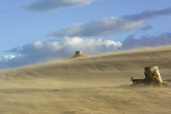 Langs het fietspad of aan de Wildbaanweg kunt u bij stevige wind de dynamiek van het stuifzand het best ervaren: u wordt op die momenten eenvoudigweg gezandstraald. Gelukkig is de atmosfeer in dit jaargetijde minder onbesuisd; wandelend in de voorjaarszon langs of door het gebied ziet u hoe oude duinen zijn afgevlakt en nieuwe ontstaan. Laat u opwarmen door het zand, dwaal in gedachten terug naar een periode waarin de Veluwe voor zeventig procent uit woestijn bestond en het doorkruisen ervan niet zonder gevaren was. Het stuifzand De Pollen; ruim twintig jaar geleden gereconstrueerd vanaf de tekentafel is nu overzichtelijk, het blonde zand onder Hollandse wolkenluchten is uitnodigend om ergens neer te vlijen en te luisteren naar de tientallen veldleeuweriken.