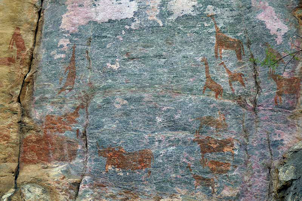 Op deze magische plek kreeg ik niet alleen een inkijkje in de lang vervlogen geschiedenis van de San, maar ook in welke dieren er toen leefden. De schilderingen van pinguïns en walvissen kwamen mij, staande in de binnenlanden van Afrika, echter nogal curieus voor. Mijn gids verklaarde hierover dat dit wel moest betekenen dat de San contacten met andere volken aan de Zuid-Afrikaanse kust onderhielden. Hoe konden zij anders immers van het bestaan van deze twee diersoorten weten?