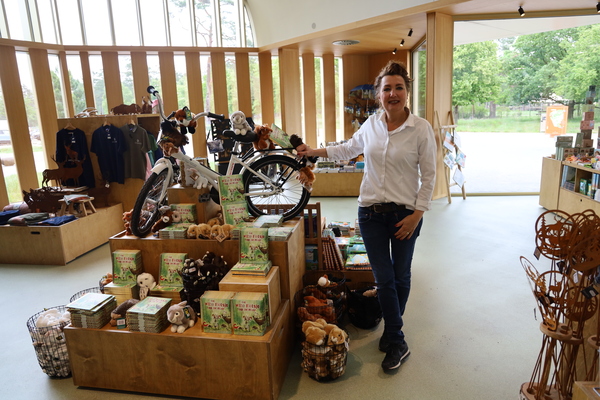 Van knuffels tot tassen en van kalenders tot hertengeweien: de Parkwinkel is dé plek voor cadeautjes, accessoires, boeken en nog veel meer. Jet van Duijn, winkelbeheerder, rijdt soms tussen de herten door naar haar werk.